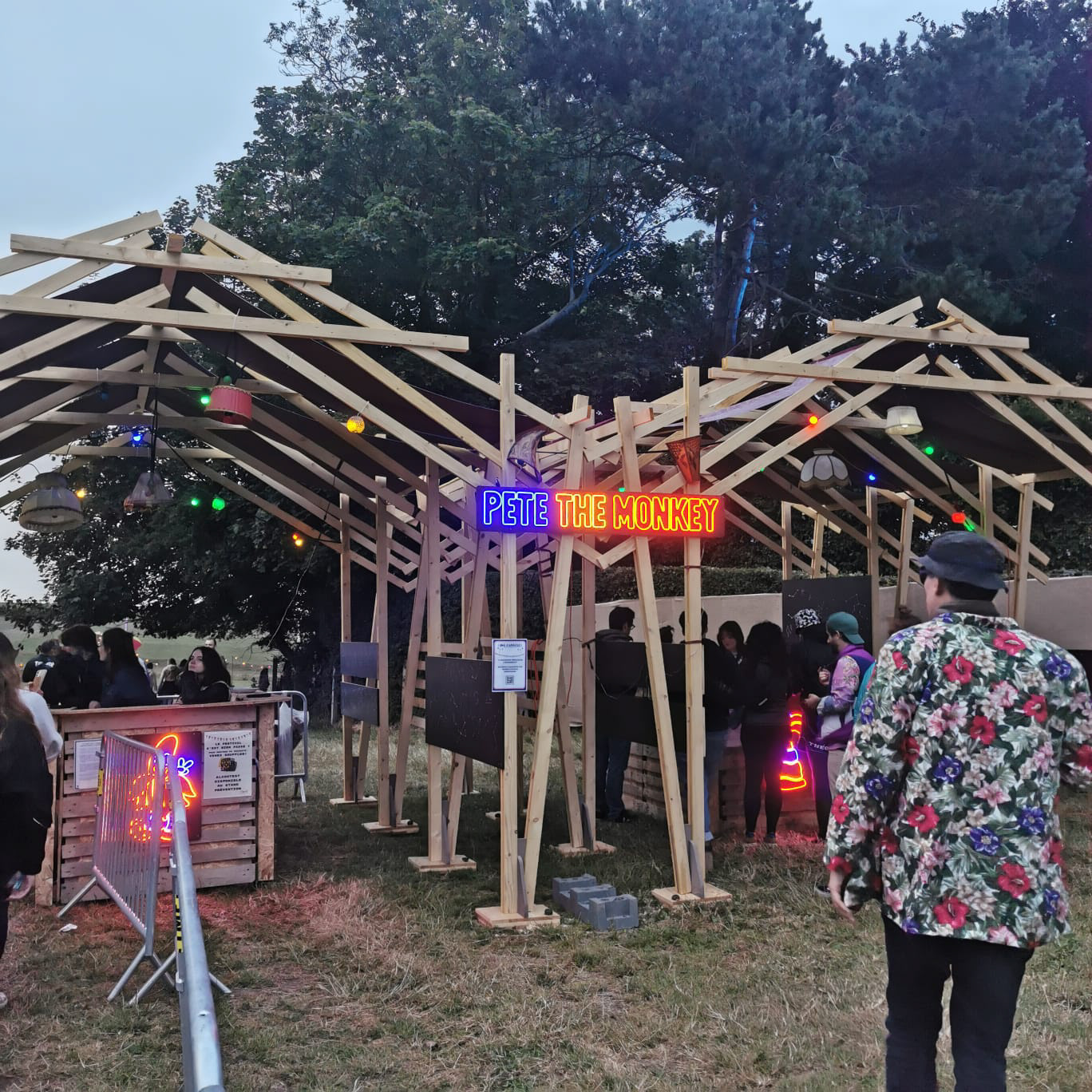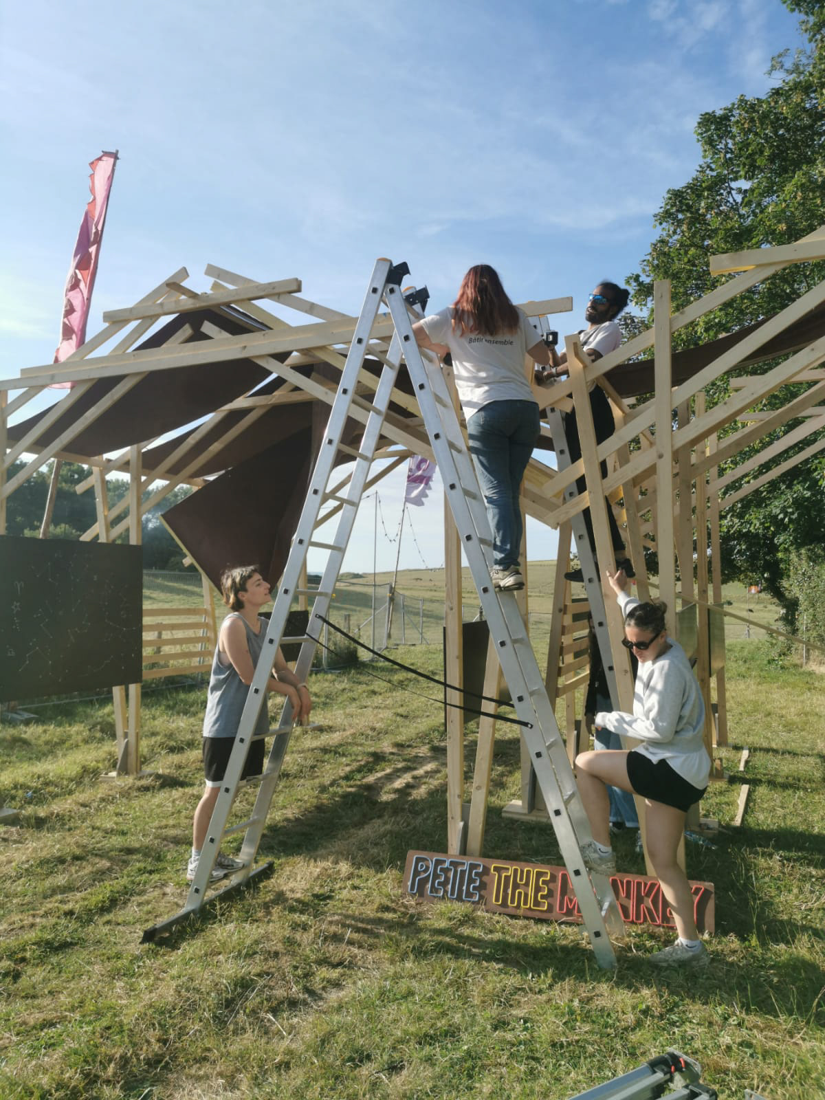 Dans le cadre de l’appel à candidatures pour la scénographie du festival Pete the Monkey, nous avons proposé la conception et la construction de l’arche d’accueil du site.